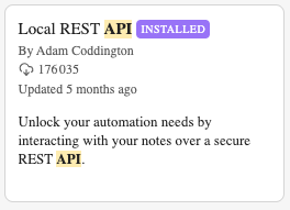 Local REST API - Cliquez sur le premier résultat “Local REST API”